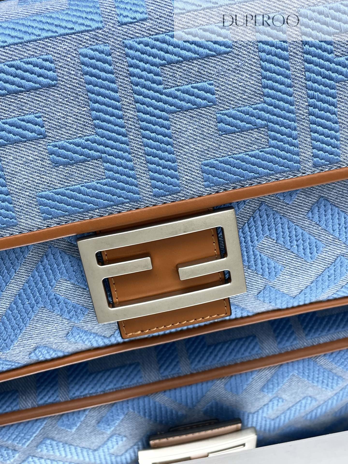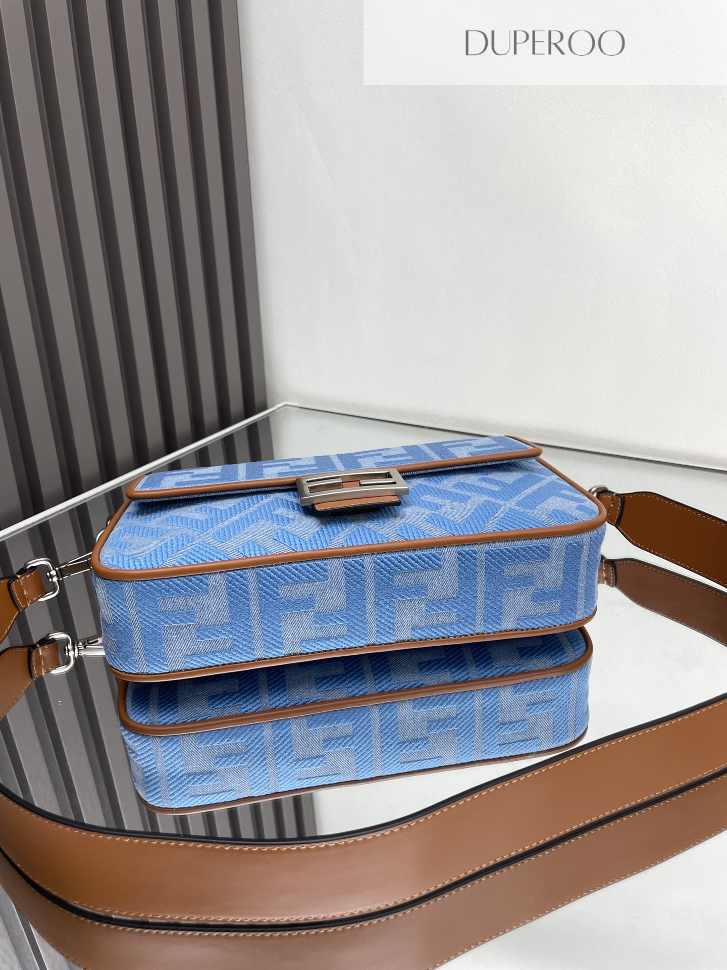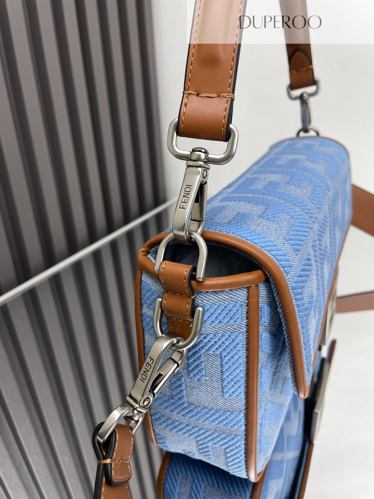 This Fendi Baguette Bag in Blue and Brown is crafted from Canvas fabric with silver toned hardware for a versatile timeless appeal.