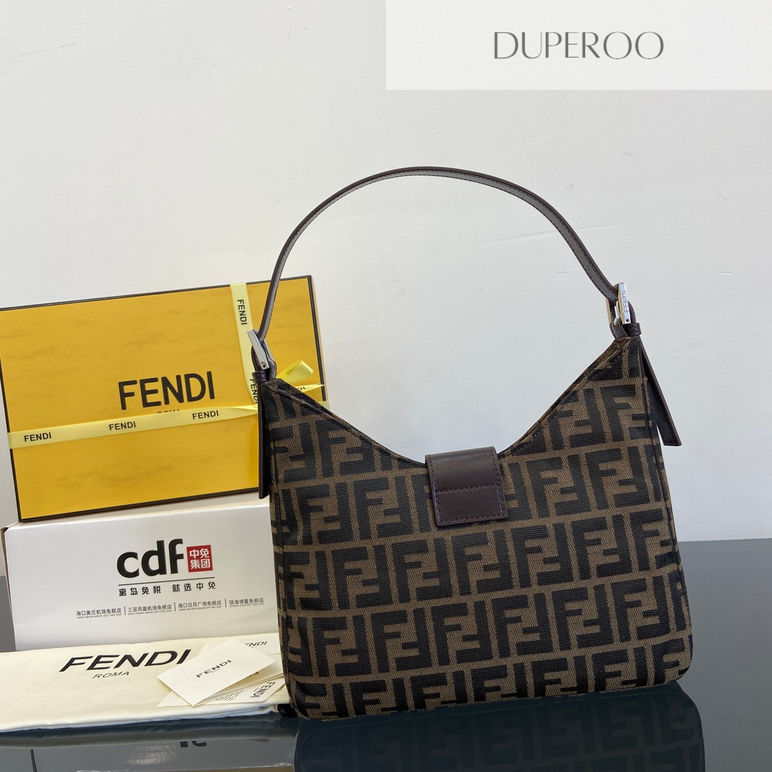 Fendi Vintage Brown Zucca Canvas Shoulder Bag