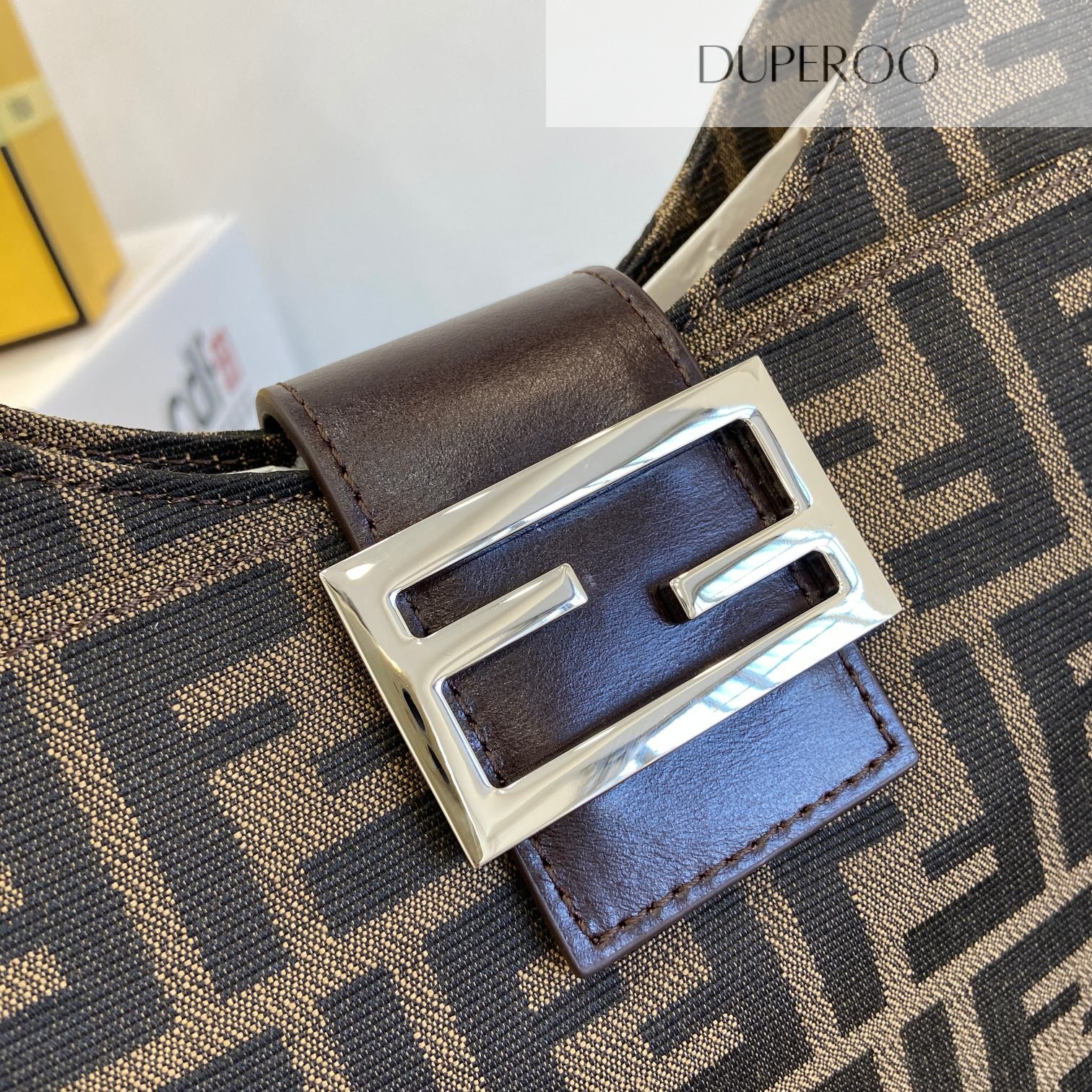 This Vintage Fendi Zucca Brown Canvas Shoulder Bag is a stylish and unique accessory.