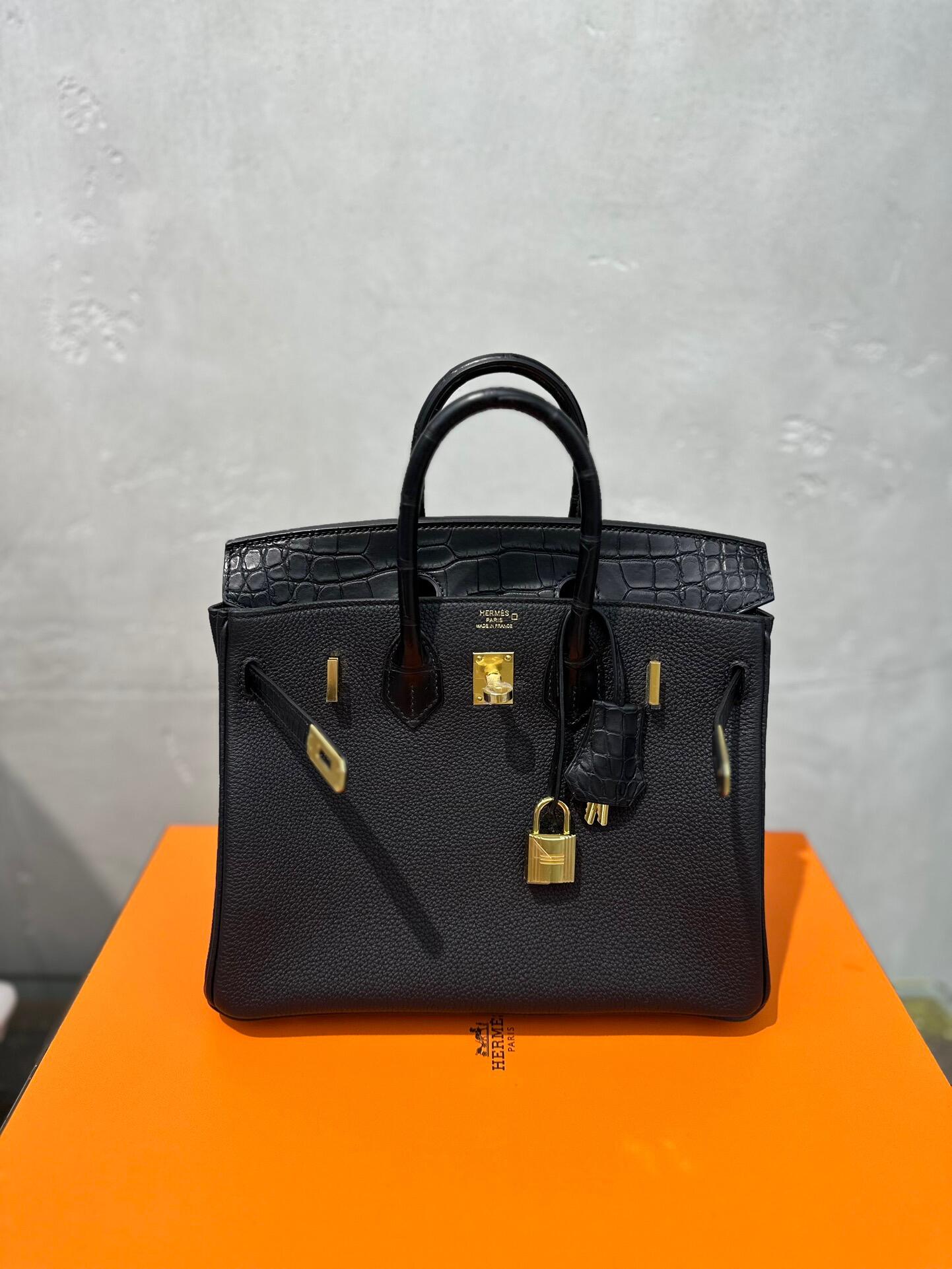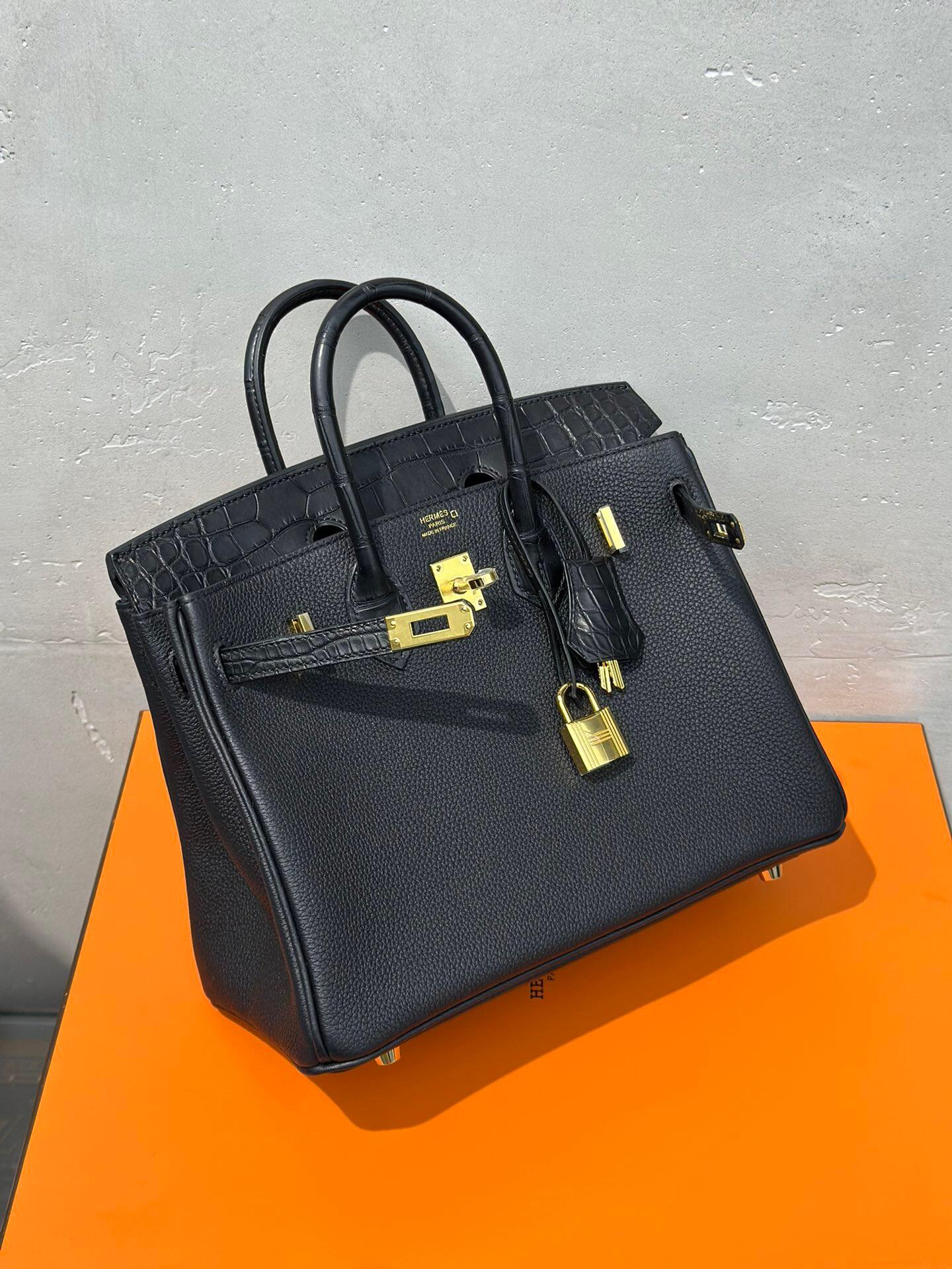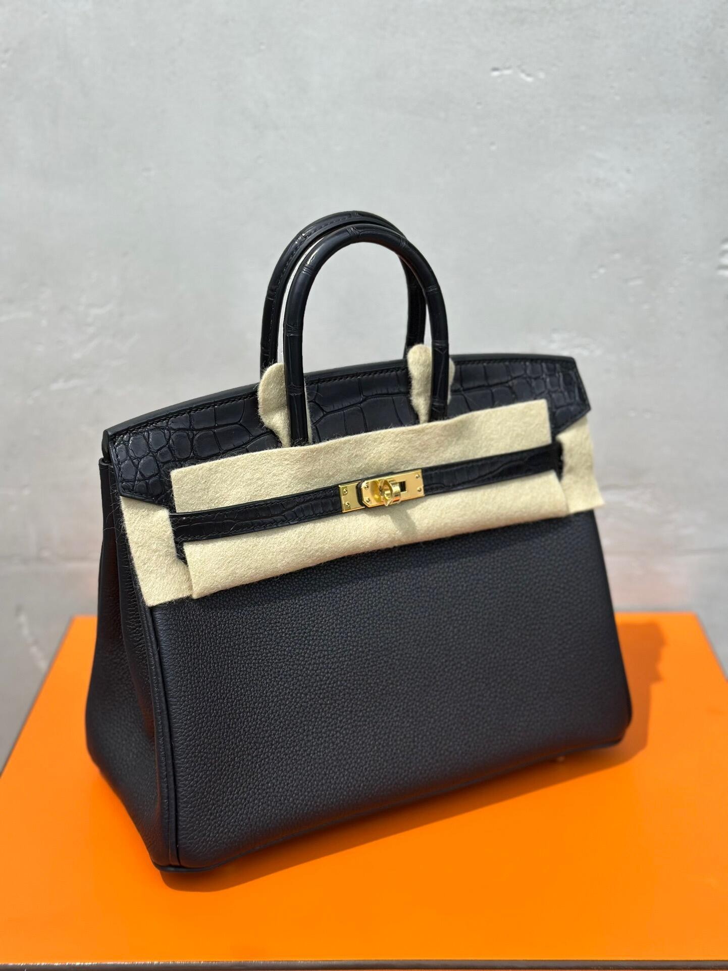 Hermès Birkin 25 Black in Togo Leather with Crocodile Flap