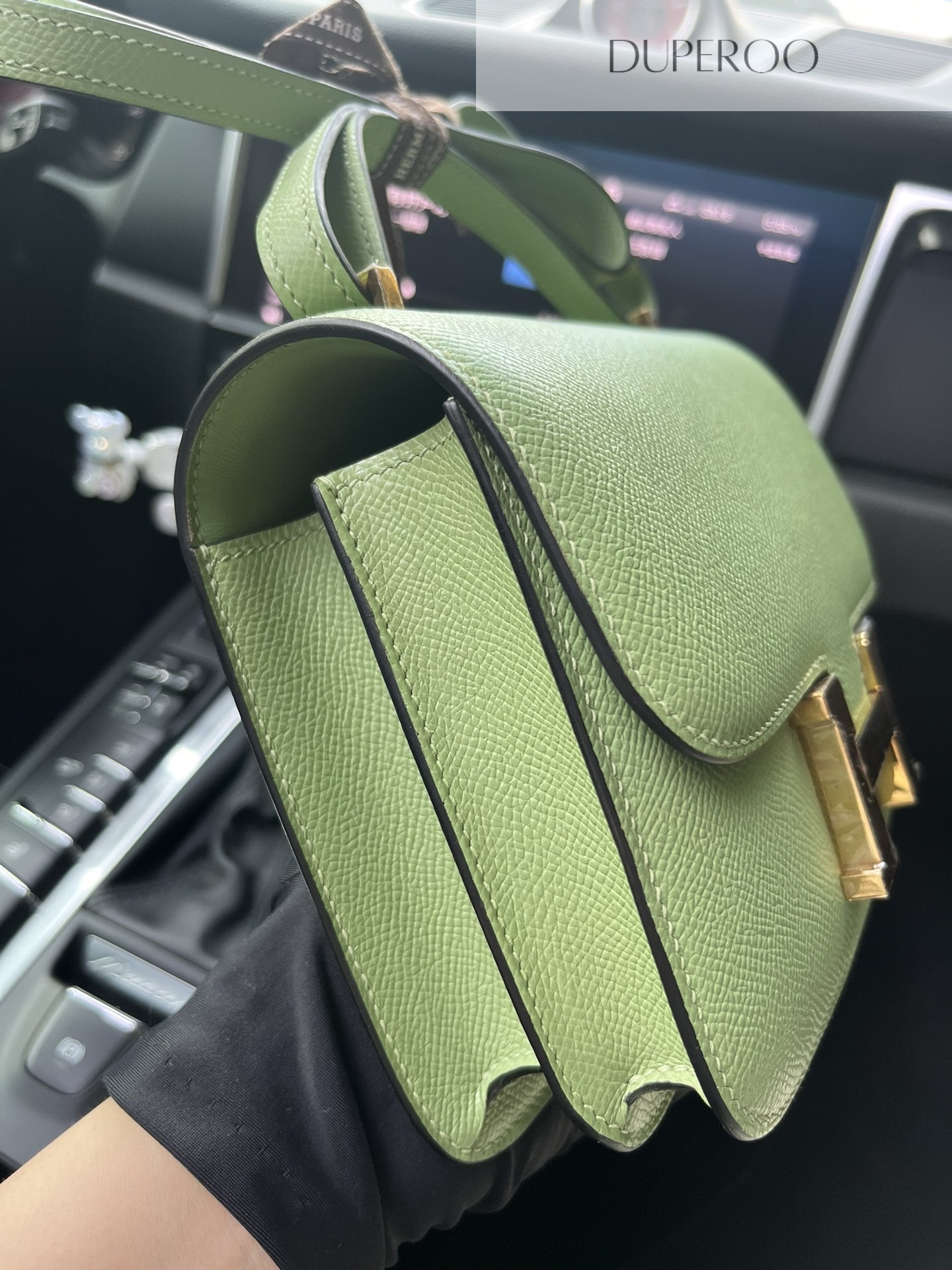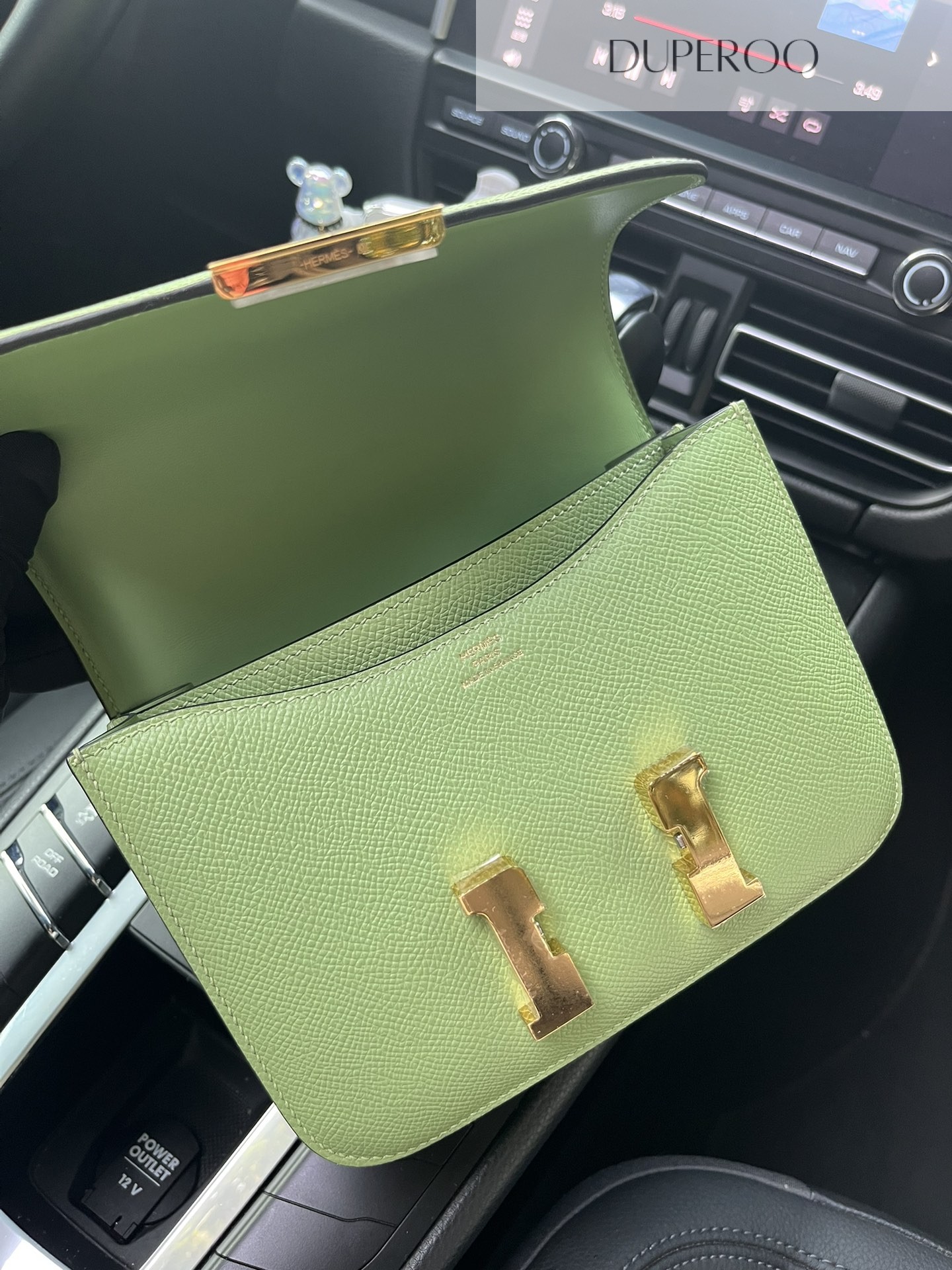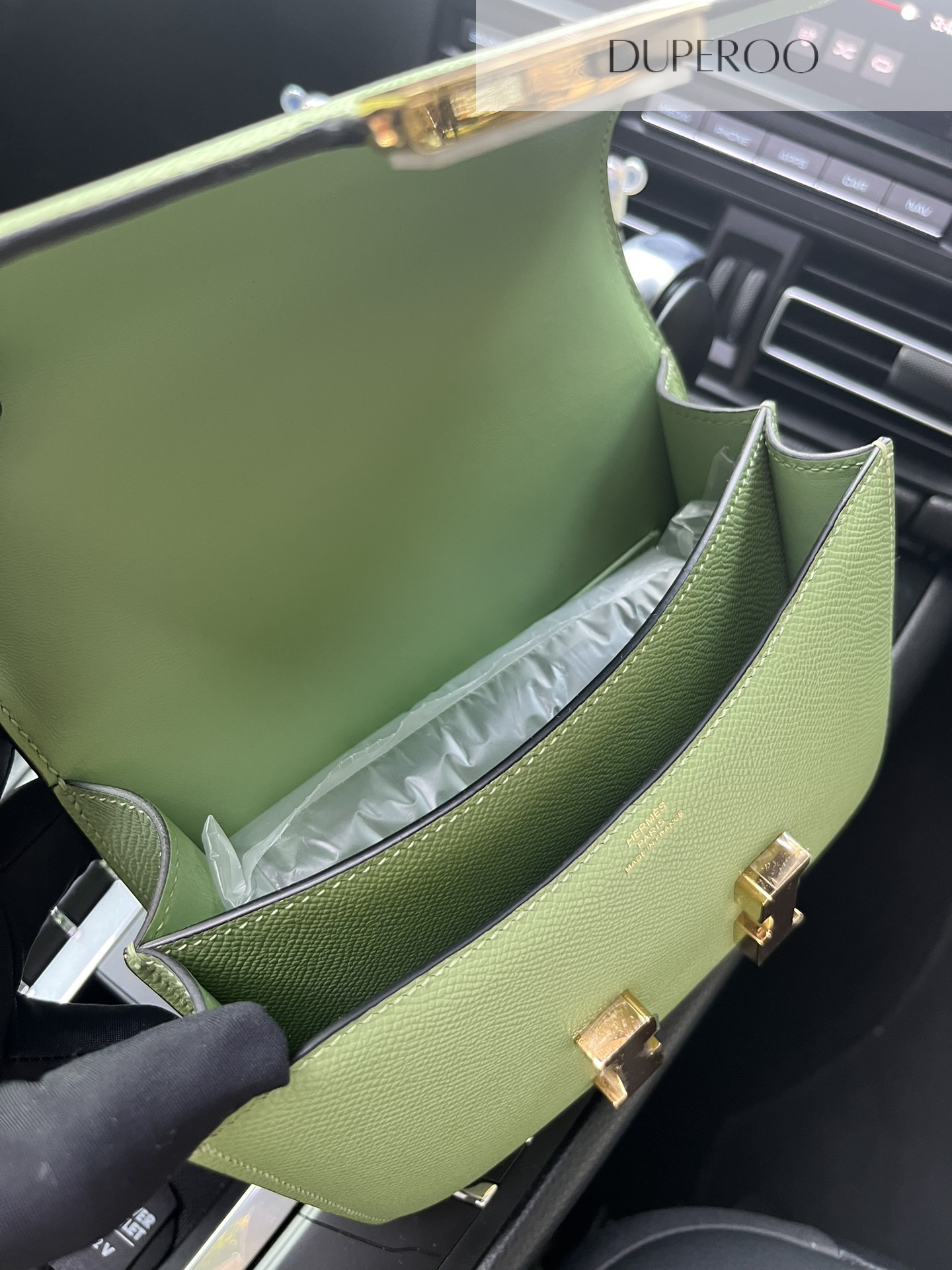 This Hermès Constance 18 in Vert Criquet is crafted from Epsom Leather that’s known for it’s fine grain and durability.