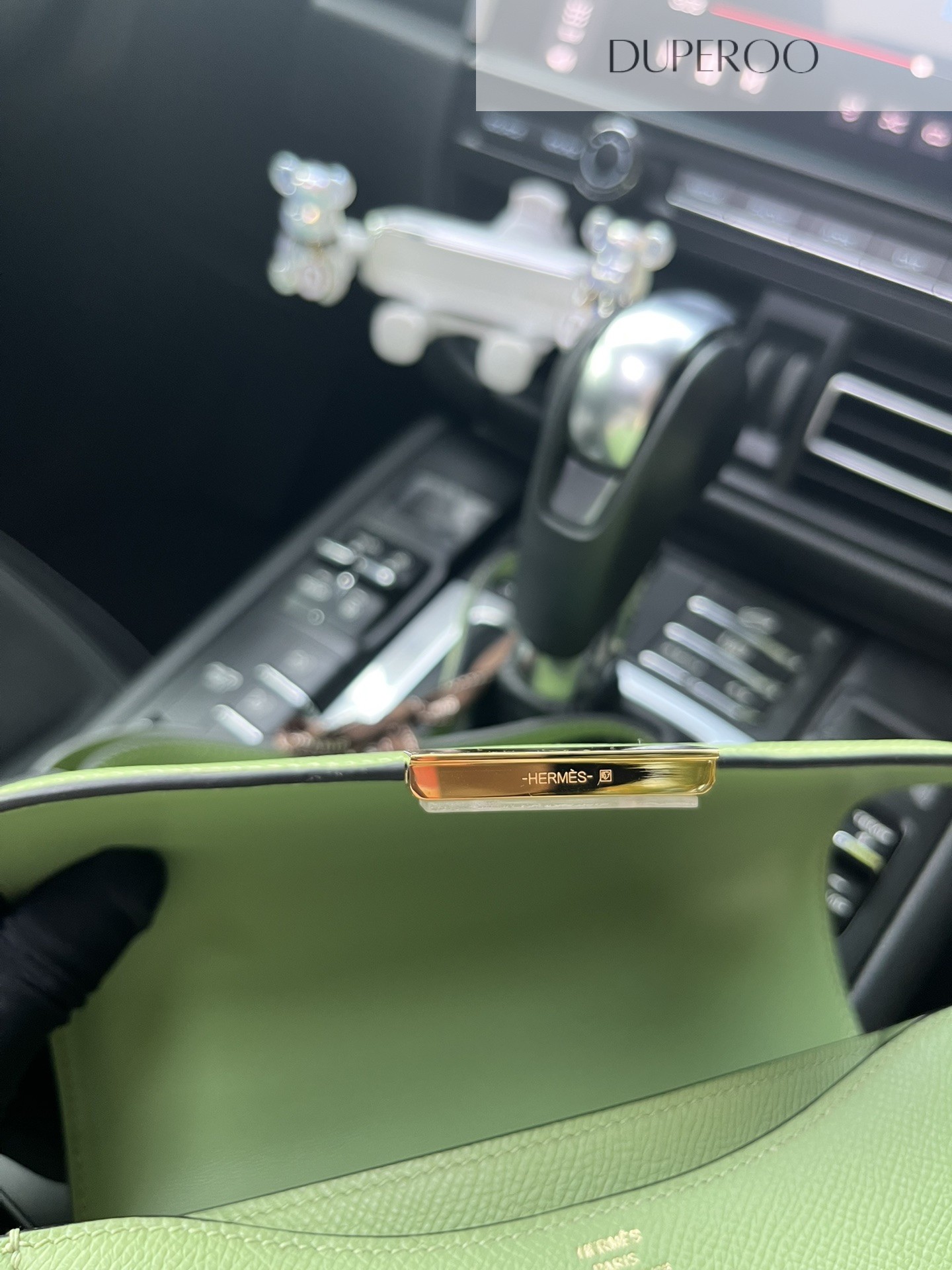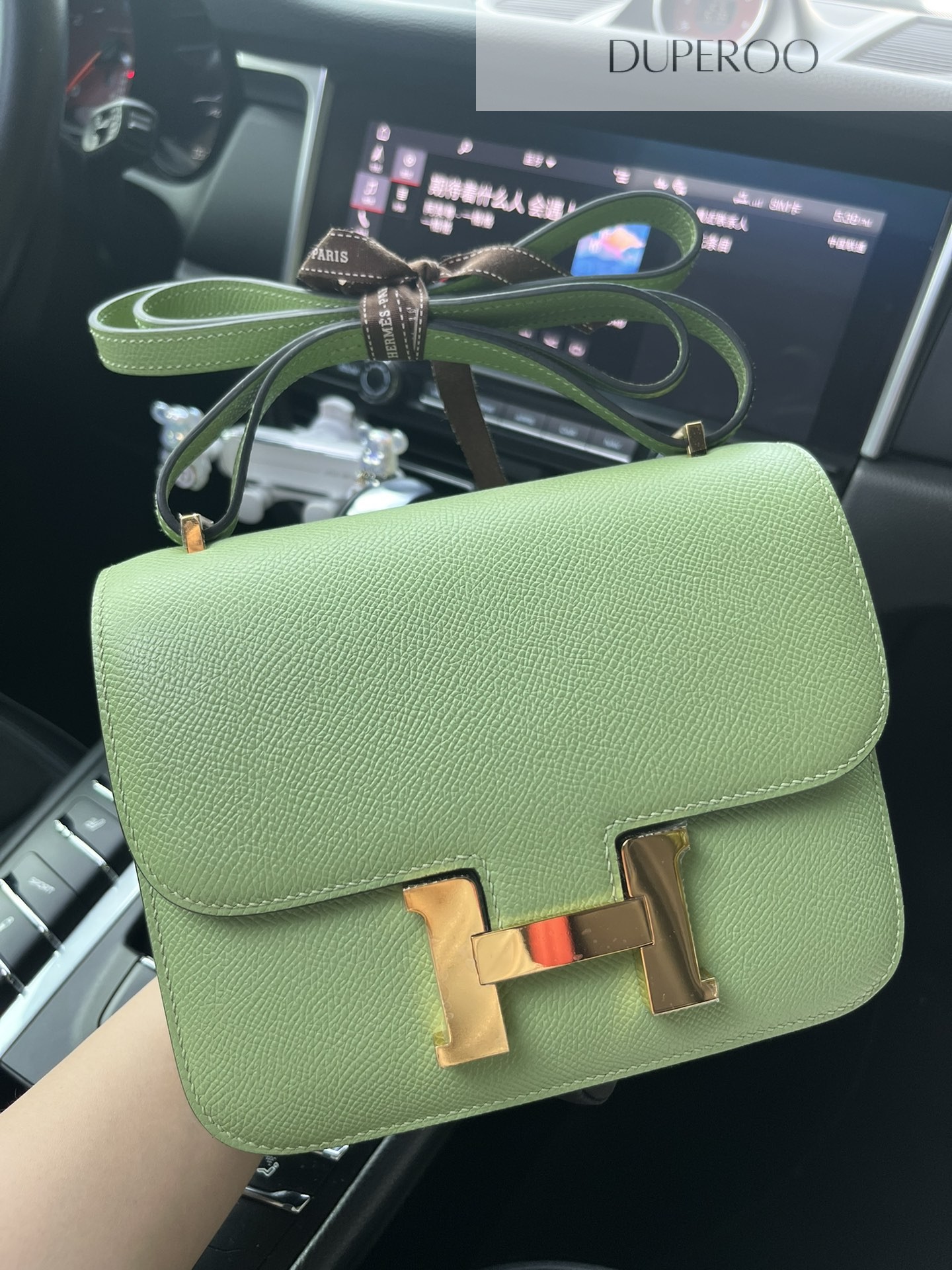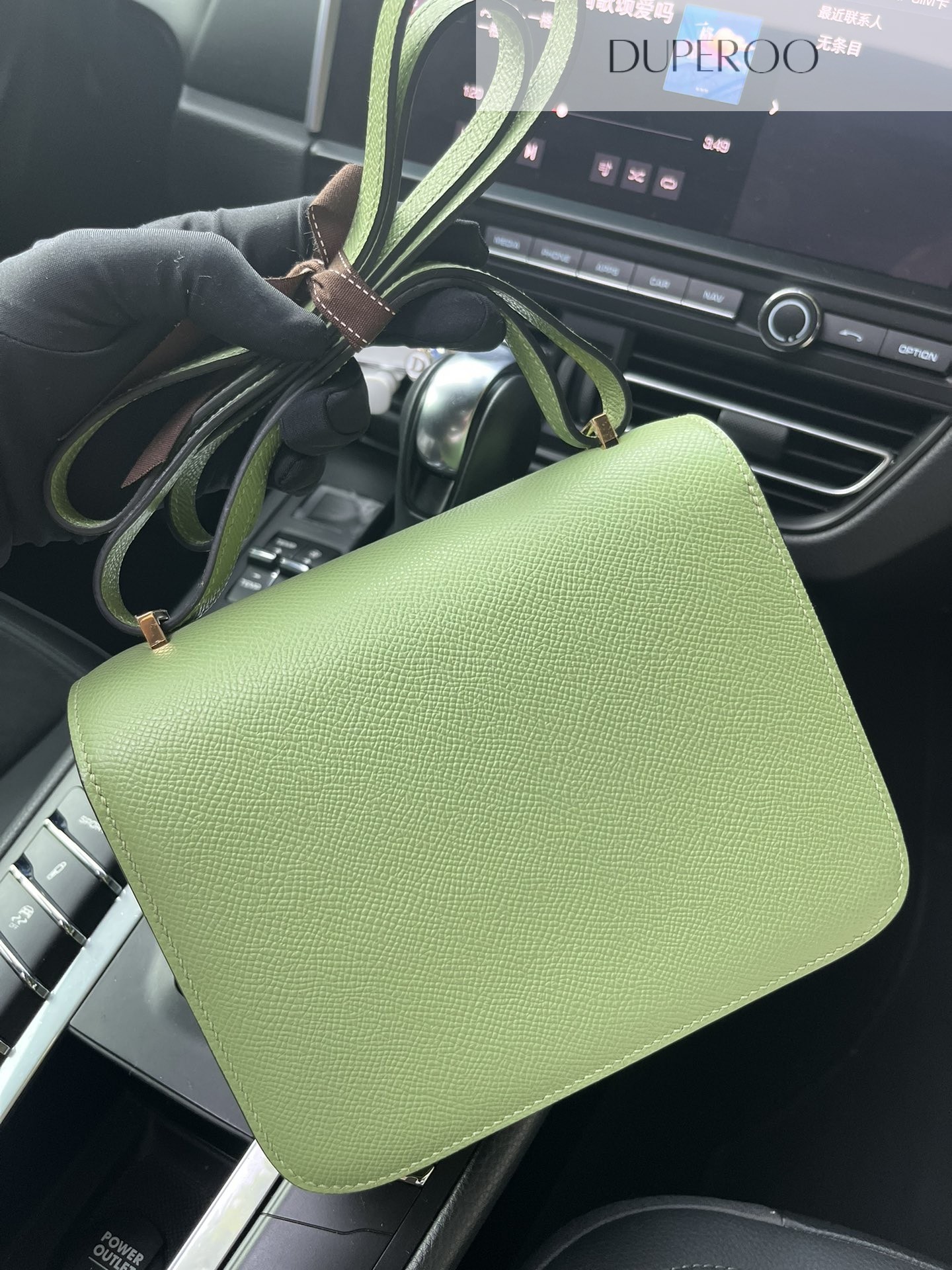 This Hermès Constance 18 in Vert Criquet is crafted from Epsom Leather that’s known for it’s fine grain and durability.