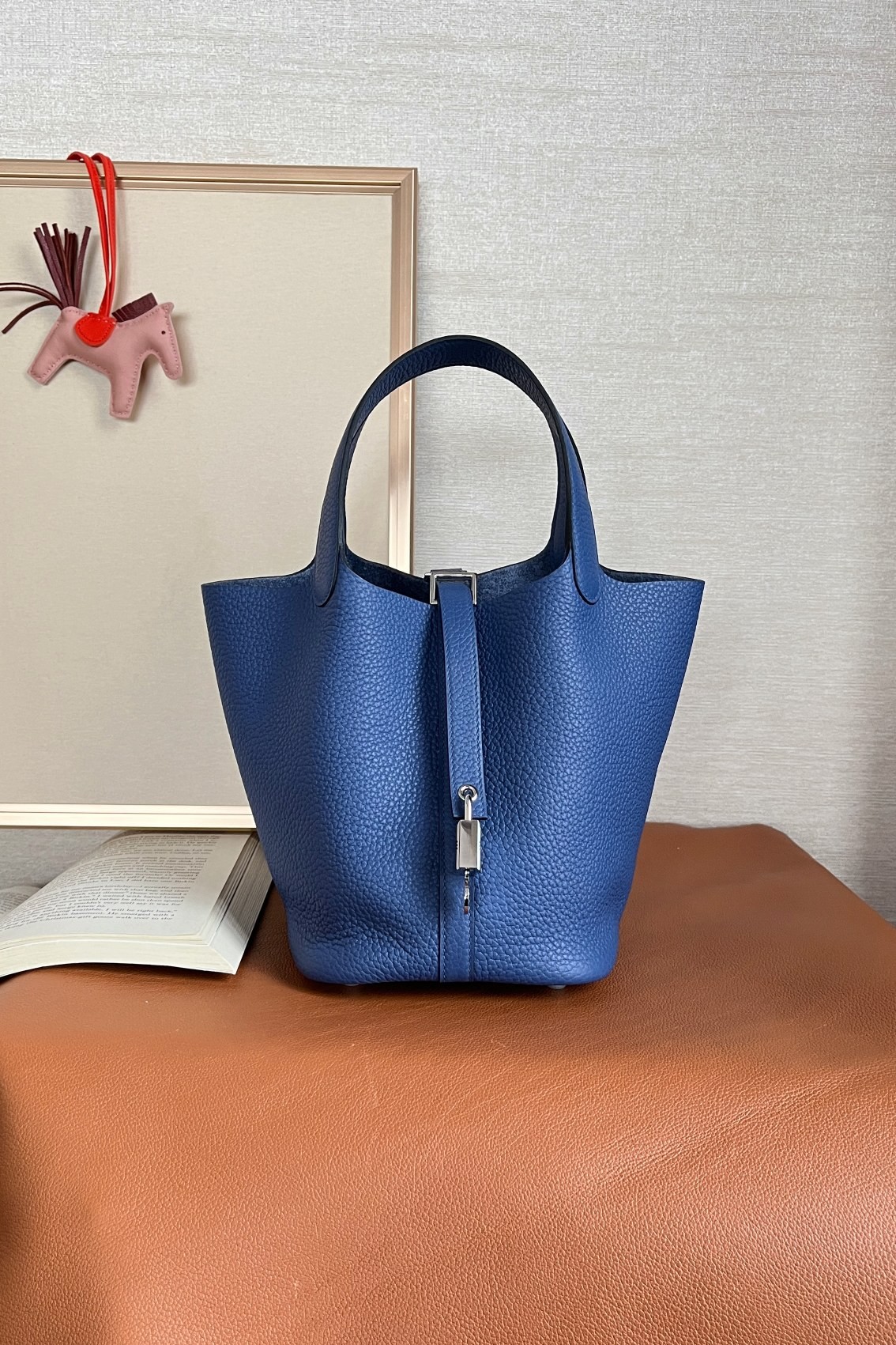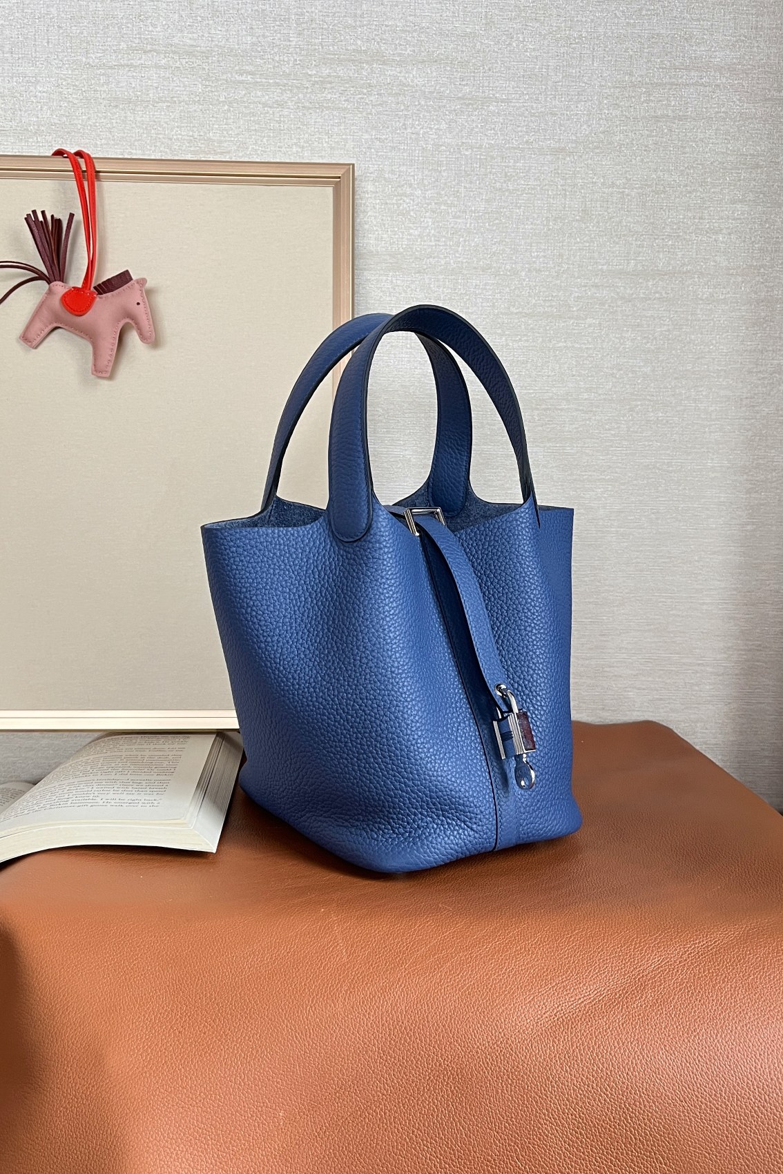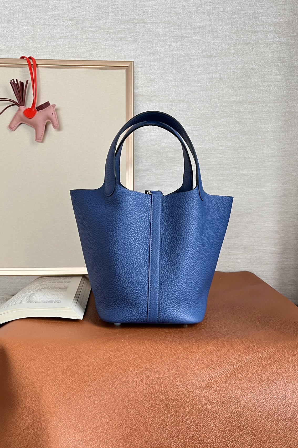Hermès Picotin Lock 18 Blue Tie in Clemence Leather