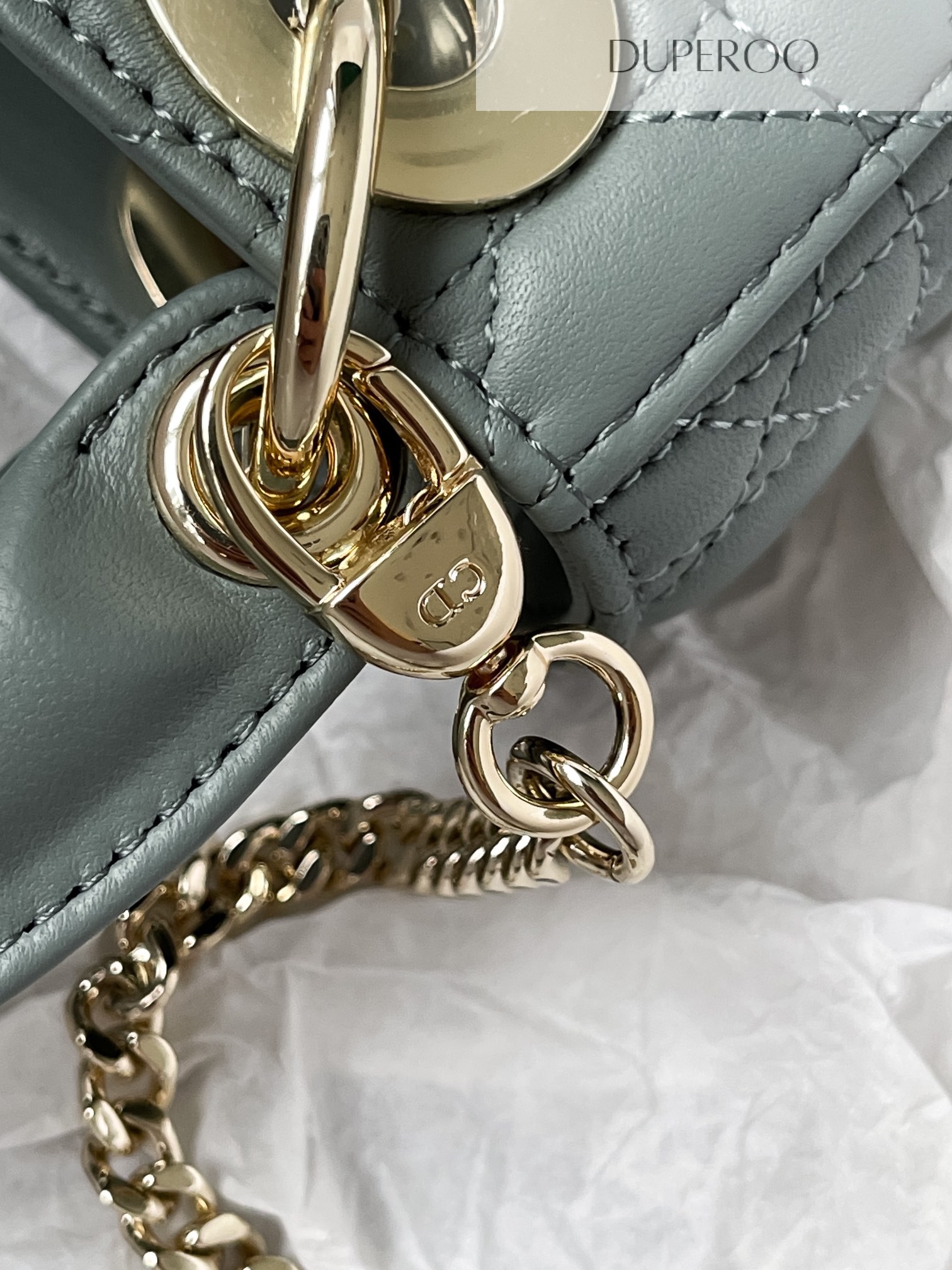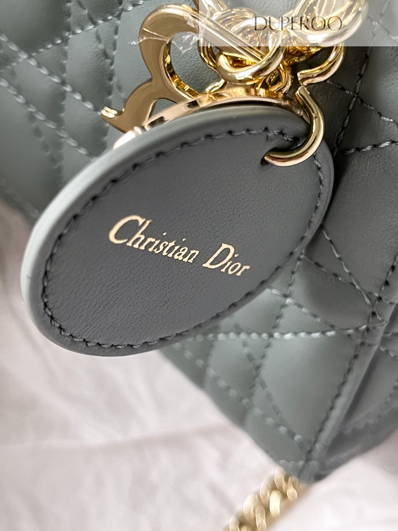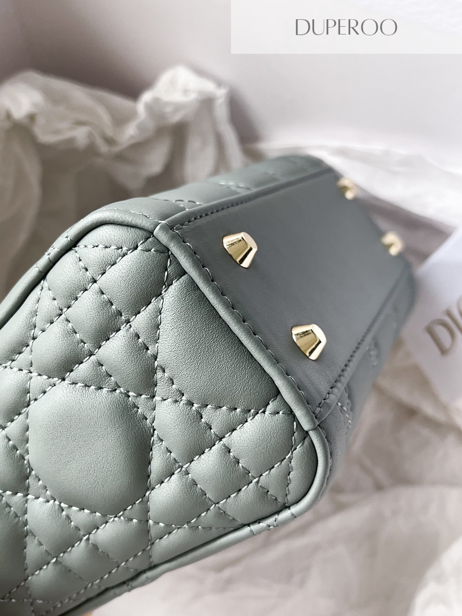 This Mini Lady Dior in Green is crafted from from Lambskin with Cannage stitching for a refined and sleek finish.